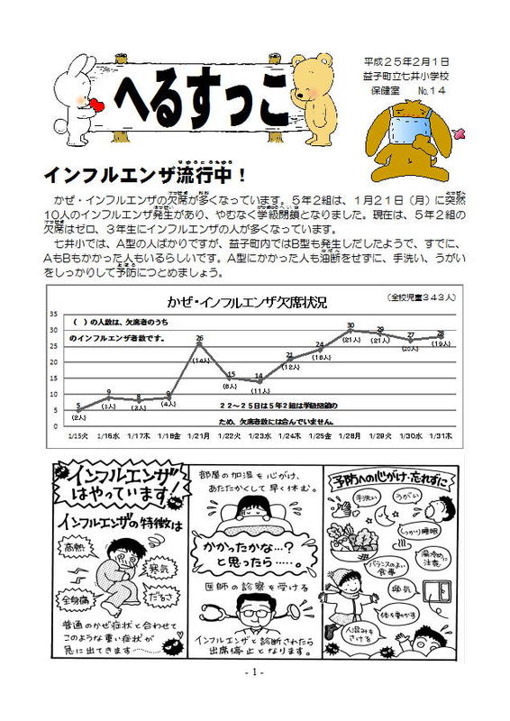2学期の終わり頃から、益子町内小中学校でインフルエンザが増えてきました。トップページの左メニュー上に「登校申出書」をアップしておきました。以前に配布したものと同じです。プリントを紛失してしまった場合など、ダウンロードしてお使い下さい。