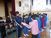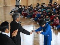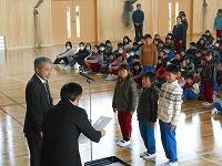 今日は、第3学期の修業式がありました。各学年の代表が校長先生から、修了証書と進級賞を授与されました。またその後、感謝の会がありました。今年度で去る4名の先生方の感謝の会を行いました。最後に、今年度で転校する児童のお別れ会もしました。