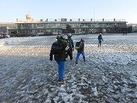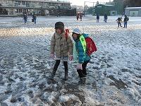 今日の朝も、とても寒かったです。子どもたちは、白い息をはきながら元気に登校しています。道路が凍っているので、慎重に歩いています。