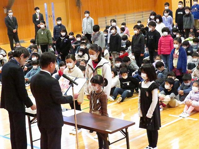 業間に三学期の学級委員任命式がありました。