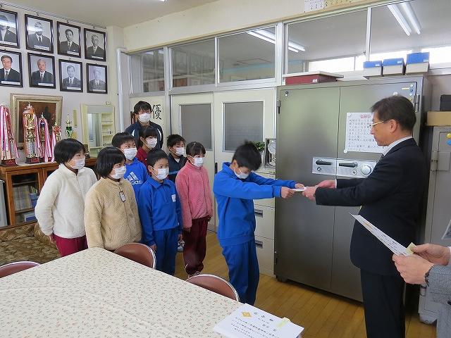 体育館に集まらず、校長室で行われました、