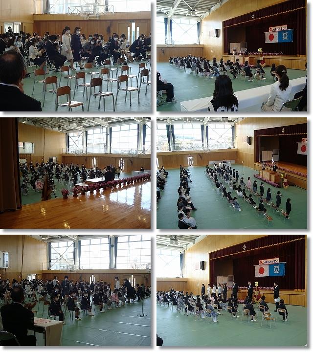 体育館でしたが在校生は参加せず、椅子の間は広く開けて行いました。