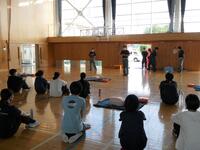 3-1、3-2体育「マット運動」前後転の回転技の確認をしていました。倒立技までいけるかな?