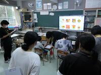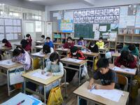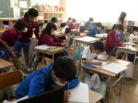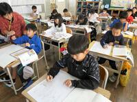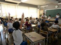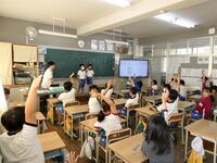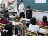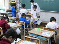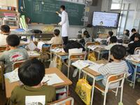 5-1の授業は “学力向上推進リーダー提案授業”として、他市町のリーダーの先生たちも参観し、研修していました。