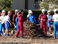 一昨日の荒天で、大量の吹きだまりとなった落ち葉を、清掃時に6年生がさらってくれました。学校周辺のお宅にもご迷惑をおかけしていることと思います。申し訳ございません。