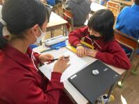 3-1理科「日なたと日かげの地面」液体温度計の使い方について学習しました。目盛りの読み方や赤い液体の正体を確認していました。