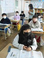 6-2国語「言葉の学習をふり返る」漢字の使い方や文の組み立て、文と文のつながりなどについて、例文を参考に確認していました。