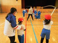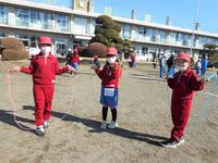 1-1、1-2体育「跳の運動遊び」長縄跳びの練習をしていました。なわとびは長短ともに跳の運動だけでなく、バランスやリズムなど、体つくりの運動遊びに最適ですね。
