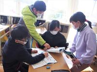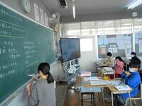 6-1算数「復習」まとめの学習の復習問題を解く時間です。友達との教え合いで効果を高めていました。
