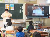 1-1外国語活動「I like bananas.くだものについて言おう」質問したり答えたり、楽しそうに学習していました。今日はA先生の代理としてK先生が来てくれました。