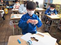 2-1算数「はこを作ろう」工作用紙を使って面の数を確かめながら箱作りをしました。まるで「展開図」、これは4年生の学習内容にもつながります。