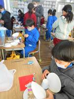 5-2図工「使って楽しい焼き物」計画(設計図)立案の時間でした。ペン立て、皿、貯金箱など何をどんなデザインにするか、調べながら楽しそうに進めていました。