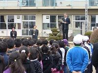 今日の卒業式の全体練習は、5、6年生が多目的教室で、1~4年生は、校庭で別れの言葉を中心にやりました。短い時間の中で子どもたちは一生懸命やっていました。