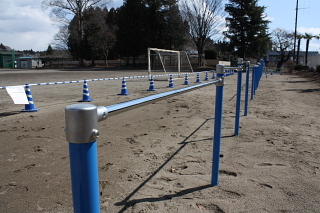 七井小の校庭が少し広くなり、遊べる場所が増えます。一部は駐車場になる予定です。春休み中も工事を行いますので、工事車両等に注意してください。