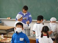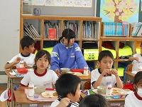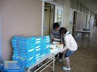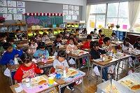 また、今日は、1年生の初めての給食がありました。6年生が準備をしてくれました。みんなもりもり元気に食べていました。