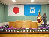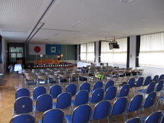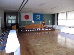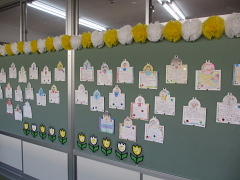 卒業式会場(多目的教室) たくさんの祝詞をいただいています。式場に設置してありますのでご覧ください。