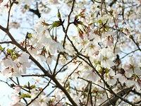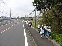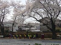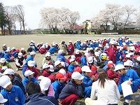 1年生は、学校に慣れるまで、給食を早く食べて帰ります。今日は、きれいな桜の下を歩いて帰っていきました。