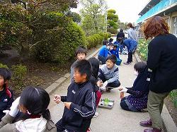 今日の昼休み、6年生が理科の授業で観察するため、植物を採取していました。どんな観察結果になるのか予想していました。