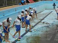 今日は、ロング昼休みから5.6校時にかけて、プール清掃がありました。写真のように汚かったプールが、みるみるきれいになっていきました。4,5,6年生の皆さん一生懸命掃除をしてくれてありがとうございました。プールに入れる日が楽しみです。