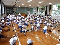 今日の体育集会は、前回に引き続きラジオ体操の練習をしました。また、3年生の算数の授業の「長さ」では、いろいろな物の長さを予想して、それを巻尺で測りました。とても楽しかったです。