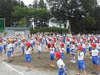 今日は、益子町のチャレンジデーでした。七井小の子どもたちは、最初ラジオ体操をして、その後、各クラスや各学年でドッジボールやへびおになど楽しんで運動をしました。みんないい汗をかいてました。