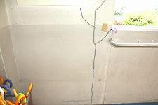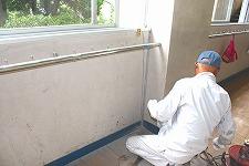 校舎内、地震の影響でできた壁のひびを補修しています。