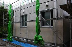 緑のネットが外されました。古い外壁をはがしました。これから、壁を塗ります。