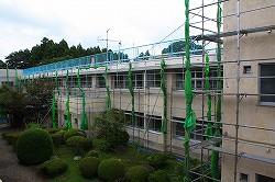 夏休みから校舎の外壁塗装工事と地震被害箇所補修工事が始まっています。校舎周辺の足場や校舎内の工事箇所に近づかないようにしましょう。