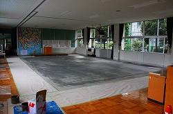 多目的教室 モルタルを流し込みました。かわくまでの間、入ってはいけません。