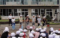 今日の全校集会は、「人権の花」終了式でした。益子町人権擁護委員さんをはじめ、宇都宮地方法務局、町総務課の来賓の方々を迎え、感謝状、記念品贈呈を行いました。まもるくん、あゆみちゃんのキャラクターも参加しました。人権の花を育てたことで、やさしく人を思いやる心や豊かな心を育てることができました。ありがとうございました。