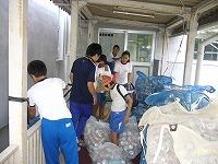 アルミ缶回収の様子 落ち葉はき あいさつチャンピオン高学年