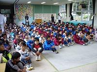 全体練習では、全校ダンスの練習をしました。ピンクの布を使って、日光和楽踊りを上手に踊ることができました。1年生もがんばっていました。今日、ピンクの布を用意していない人は、学校に持ってきましょう。