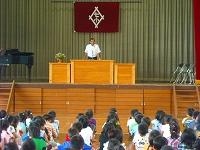 始業式の前に、今日からお世話になる学生支援員(先生のお手伝いをしてくれる大学生)の紹介がありました。おもに1、2年生を中心に毎週木曜日に授業のお手伝いをしてくれます。いっしょに勉強をしたり、運動をしたり、遊んだりしていきたいです。