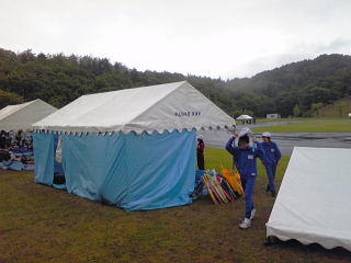 運動会の入退場門を設置しました。 運動会用テントの骨組も設置しました。
