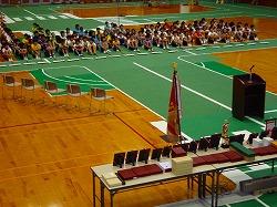 PTA会長さんのあいさつでスタートです。 5年生もがんばりました。