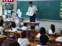 それでは、七井小の誕生日ですが、みなさんは分かりますか。明治7年7月1日です。その数字をゴロ合わせで言うと「な(7)・な(7)・い(1)」と言うことができます。覚えやすいでしょう。昨年は校歌を作曲してくださった原 健(はら けん)先生をお迎えし、記念式典を行いました。これまでに七井小学校を卒業した児童は、5,666名です。とても歴史のある学校です。