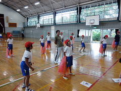 ラジオ体操は、伸ばすところや曲げるところを確認してから通してやってみました。