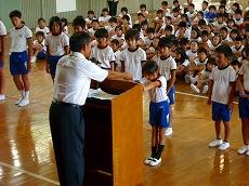 それでは、今日のクリーン活動の様子を家に帰ったら、お家の人に話してあげてください。よく頑張りました。終わります。