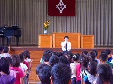 ここで、みなさんに問題を出します。七井小の誕生日は7月1日、今日です。今日で何歳でしょう。分かった人は、後で校長室に来てください。みなさんが来てくれるのを楽しみにしています。