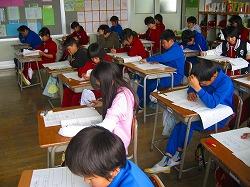 まず、1、2年生の授業を見せてもらいました。英語と理科の授業でした。中学校の勉強は少し難しそうに感じたそうです。