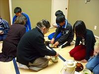 今日は「茶の湯」「和太鼓演奏」「尺八演奏」を選んだ3つのグループが、ボランティアの先生から話を聞いたり教えていただいたりしながら、実際に体験しました。