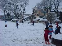 今朝の校庭は、あたり一面が雪景色となっていました。この冬初めての雪にみんな大喜びでした。雪合戦、雪だるま作りと雪を使って楽しく遊んでいました。