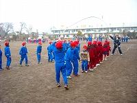 8の字で跳んだり、みんなで一斉に跳んだりと、仲良くなわとびをすることができました。「1回でも多く跳ぼう!!」と、どのクラスも頑張っていました。