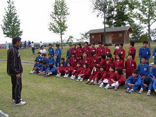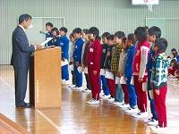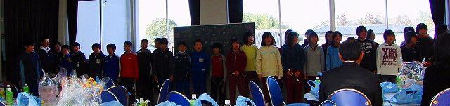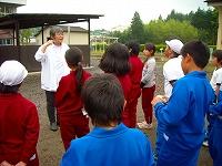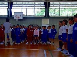 記録会終了後、校長先生から「がんばりました」とお褒めの言葉いただきました。応援の態度、集合のしかた、係の仕事、あいさつ、すべてがすばらしかった七井小の5・6年生でした。