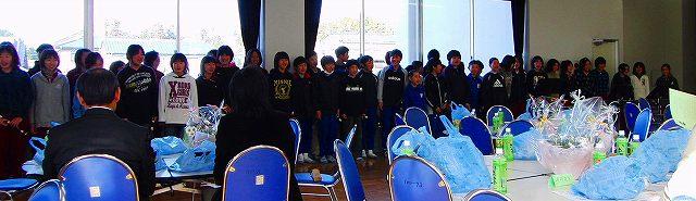 先日の郡大会で活躍したバレー部が表彰されました。呼ばれた時の返事もよく、堂々とした態度が立派でした。