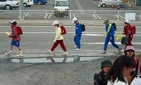 いつも登下校などでお世話になっている七井の駐在さんや交通指導員さん、交通教育指導員さんに、横断の仕方や道路の歩き方を指導してもらいました。