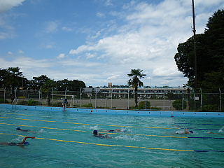 今日7月22日(水)の水泳記録会に向けての練習は、予定通り実施します。午後のプール開放につきましては、12時45分以降に決定いたします。
