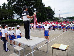 さて、本校は昨年度から、研究PTAの指定を受け、「すべての子どもたちに健康で安全な生活を! ~学校・家庭・地域が手を携えることによって~」の研究主題を掲げ、「研究PTA」の活動に取り組んできました。その一環として、本年度新たな学校行事として保護者の皆様にも参加していただく「地域安全教室」を下記のとおり開催いたします。
