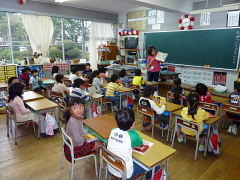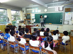 1学期に学習した「わり算」や「たし算、ひき算の筆算」「長さ」の勉強をもとに、図を見て問題を作るという勉強でした。自分で問題を作るというのはとても難しい内容でしたが、どの子もしっかり学習に取り組んでいました。できあがった問題を友達どうしで解き合って、より学習を深めることができました。