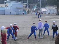 業間は1~3年生が校庭、4~6年生が体育館で練習しました。